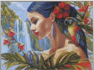 Fabric, Wool/Acrylic Threads, Needle, Chart and Instructions.